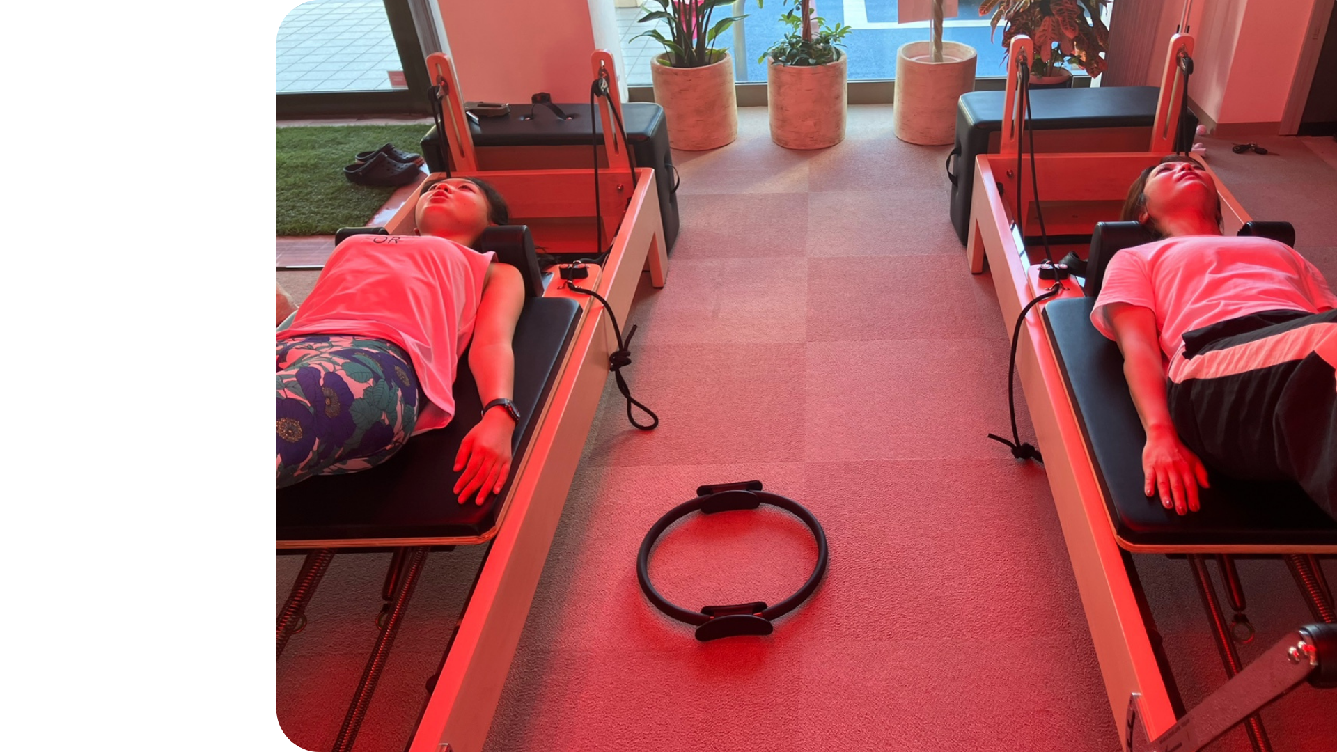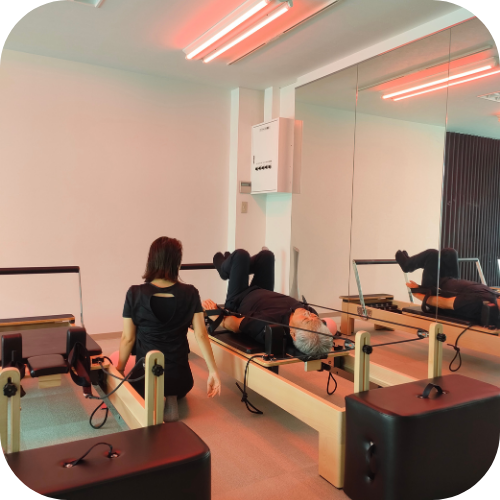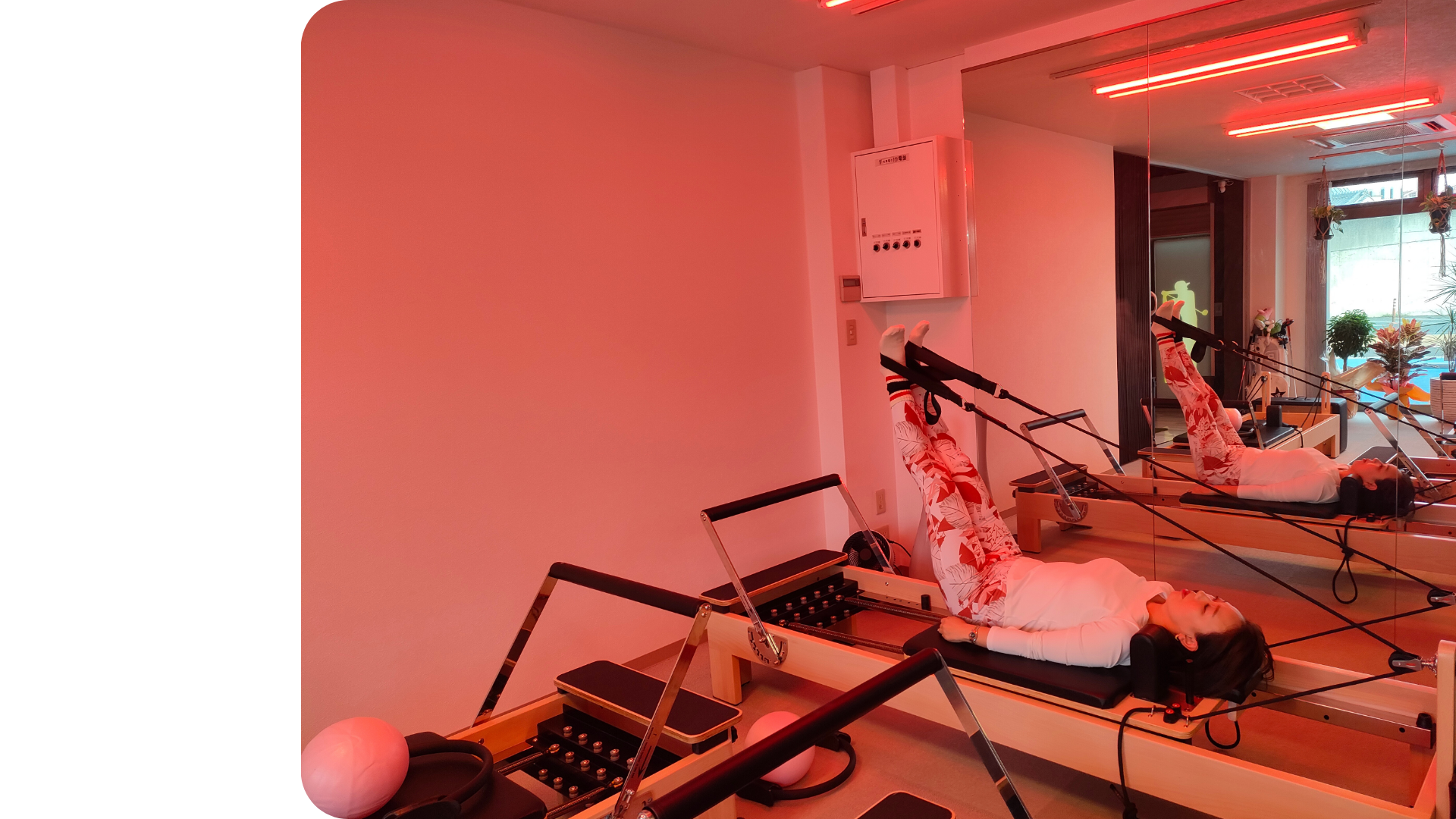 ヨガよりも高負荷とされているピラティスですが、リフォーマーという補助器具を使うことで様々なお客様に対応が可能となっております。