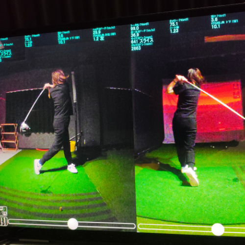 弾道解析機により詳細なデータ、インパクトの瞬間のフェースの動きを解析。カメラにてスイング毎ごとに自身のスイングが撮影されます。